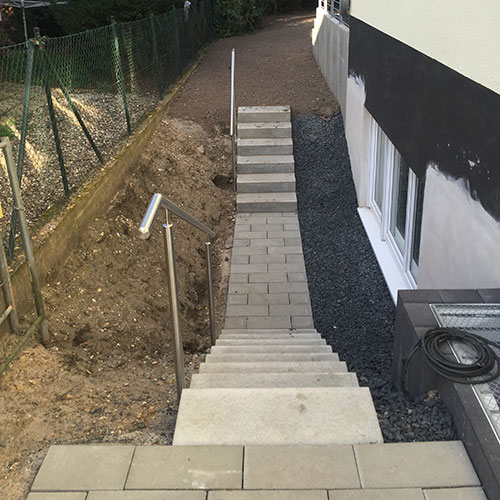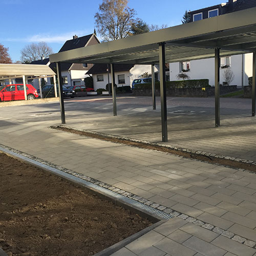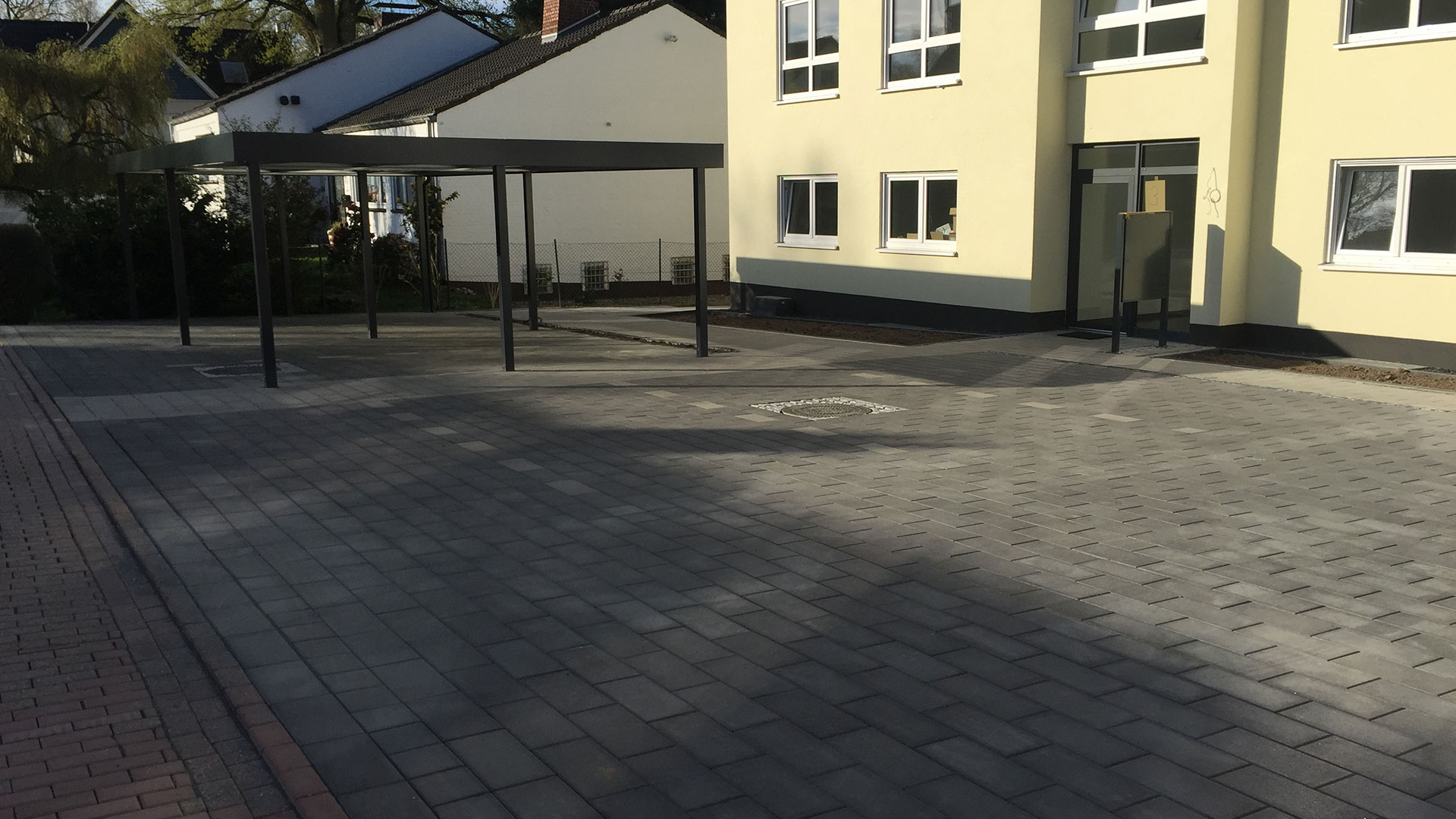 Vor einem Mehrfamilienhaus in Bergisch Gladbach-Refrath haben wir die kompletten Pflasterarbeiten für verschiedene Parkplätze und Wege ausgeführt.