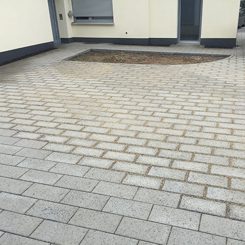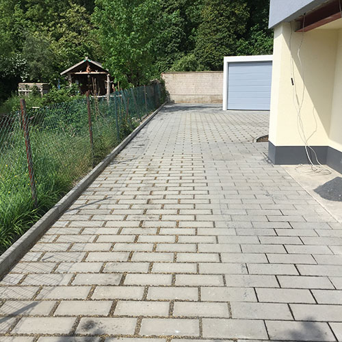 - Verlegung von Betonsteinen (Fa. Kann) mit Rasenfugen